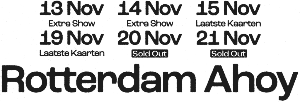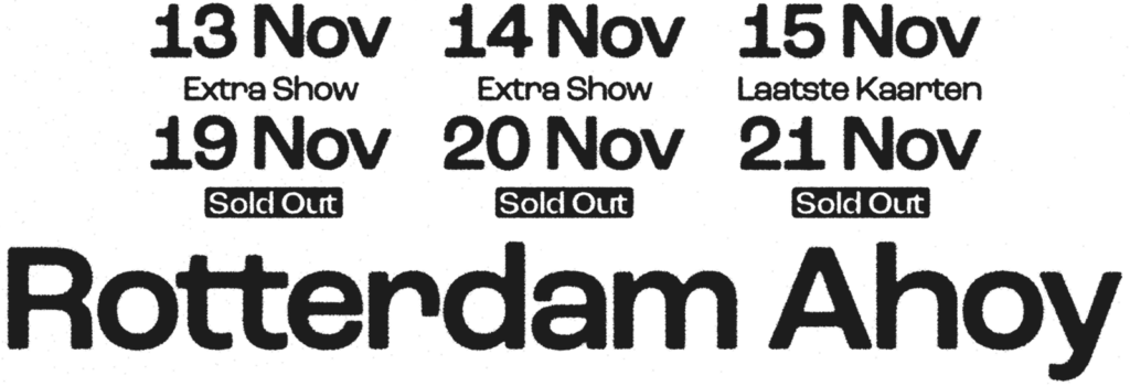Let op: alle tickets zijn Mobile Only. De barcodes worden de maandag voor de show zichtbaar in alle orders. Hier ontvangen alle ticketkopers ook een e-mail over.